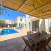 In this stylish home you will find all you need for a relaxing break. It has spacious rooms, private swimming pool, a delightful garden, private parking and a barbecue area. The main room in the villa is the large lounge and includes a dining area for 8 people, perfect for entertaining or family get- togethers. At the top floor of the villa are situated three bedrooms, one with an en suite bathroom and a separate bathroom/WC. The house itself has a fully equipped kitchen with washing machine, dishwasher, oven/hub, microwave, toaster, kettle. WiFi is available in all areas of the house and it's free of charge. This modernly furnished villa is air conditioned throughout. The villa is only 3 minutes walking distance from fireman's beach and kapparis beach. This is an excellent villa option for families, just 3 minutes away from the sandy beaches of Kapparis.