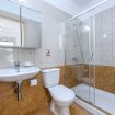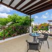 The downstairs bedroom includes a single bed, twin bunk beds, and closet space, along with convenient access to the WC. Upstairs, the master bedroom features a double bed, en-suite shower, and a private veranda overlooking the pool. A twin bedroom with two single beds completes the upstairs layout, along with a family shower room.