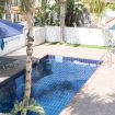 outside the villa has a spacious private garden and pool area with sun lounger and patio furniture plus a BBQ area and out dour shower.